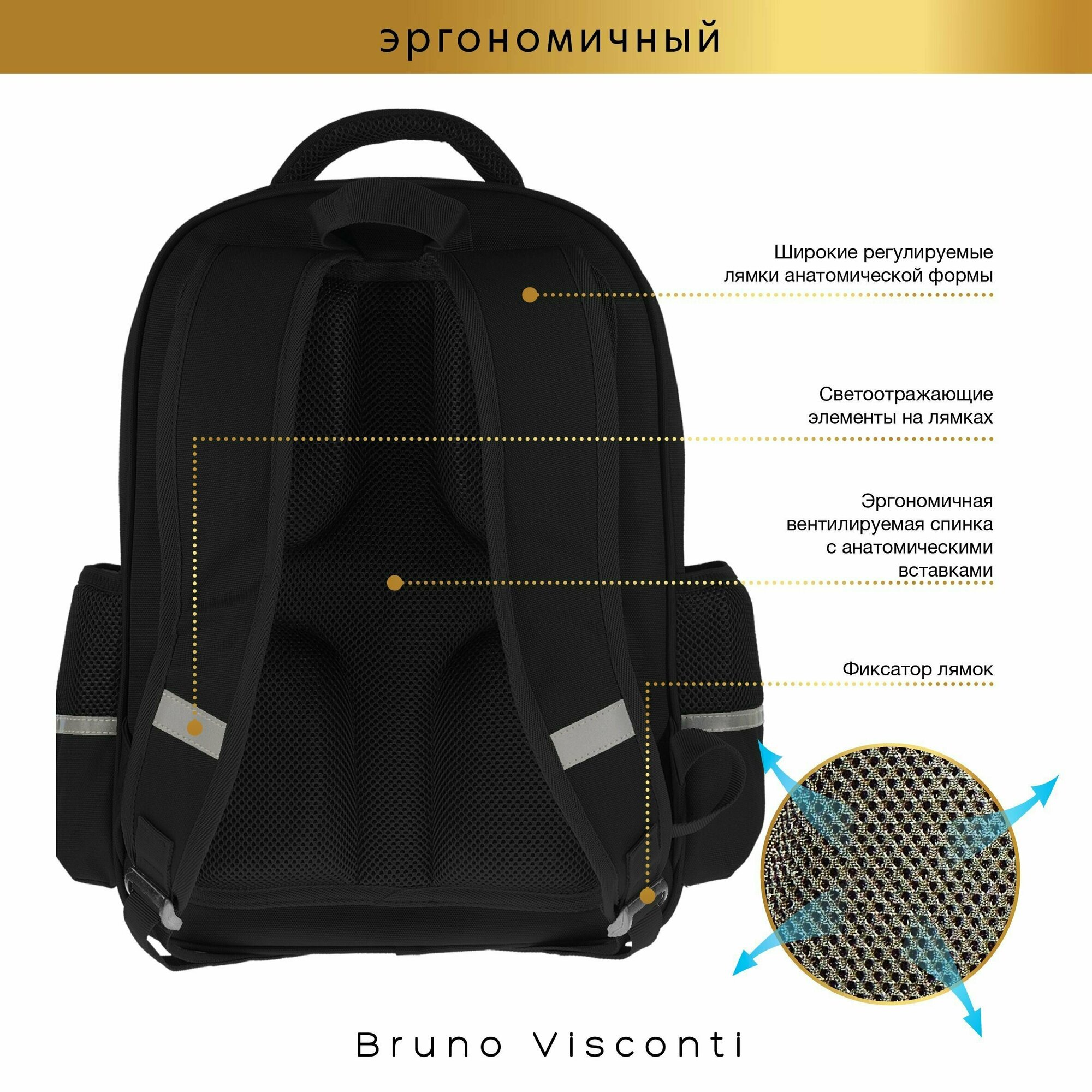 Рюкзак Bruno Visconti черный с эргономичной спинкой "волшебный ЛИС" Арт. 12-002-175/01 интересное: