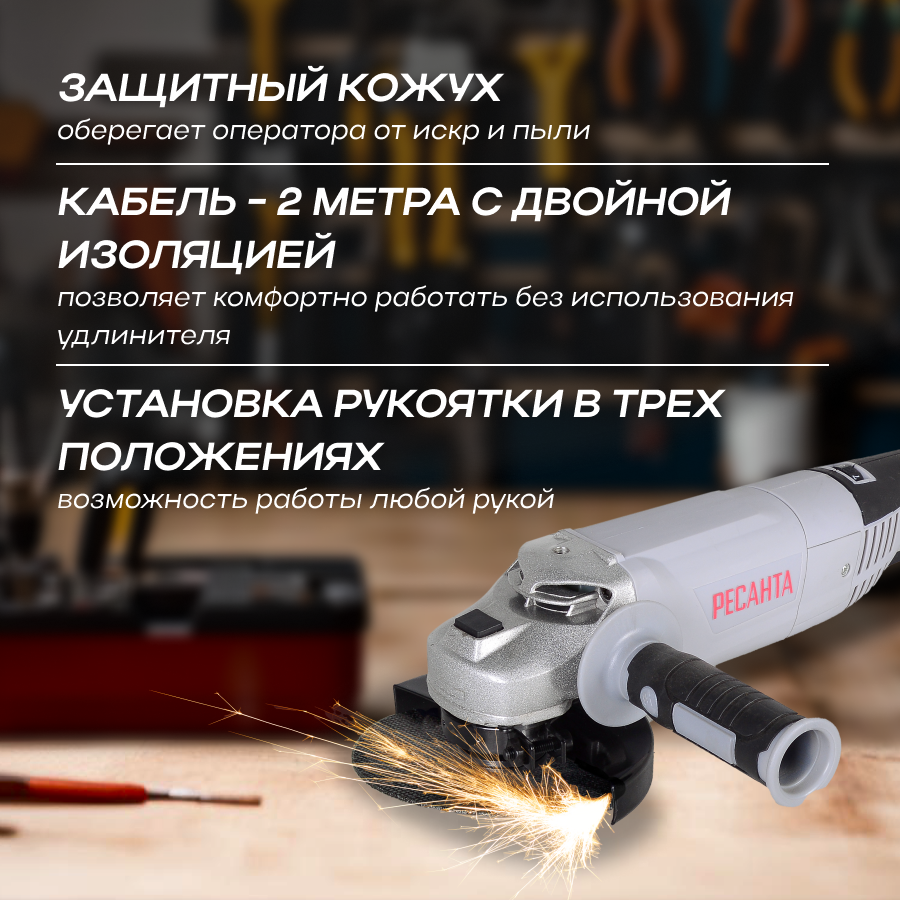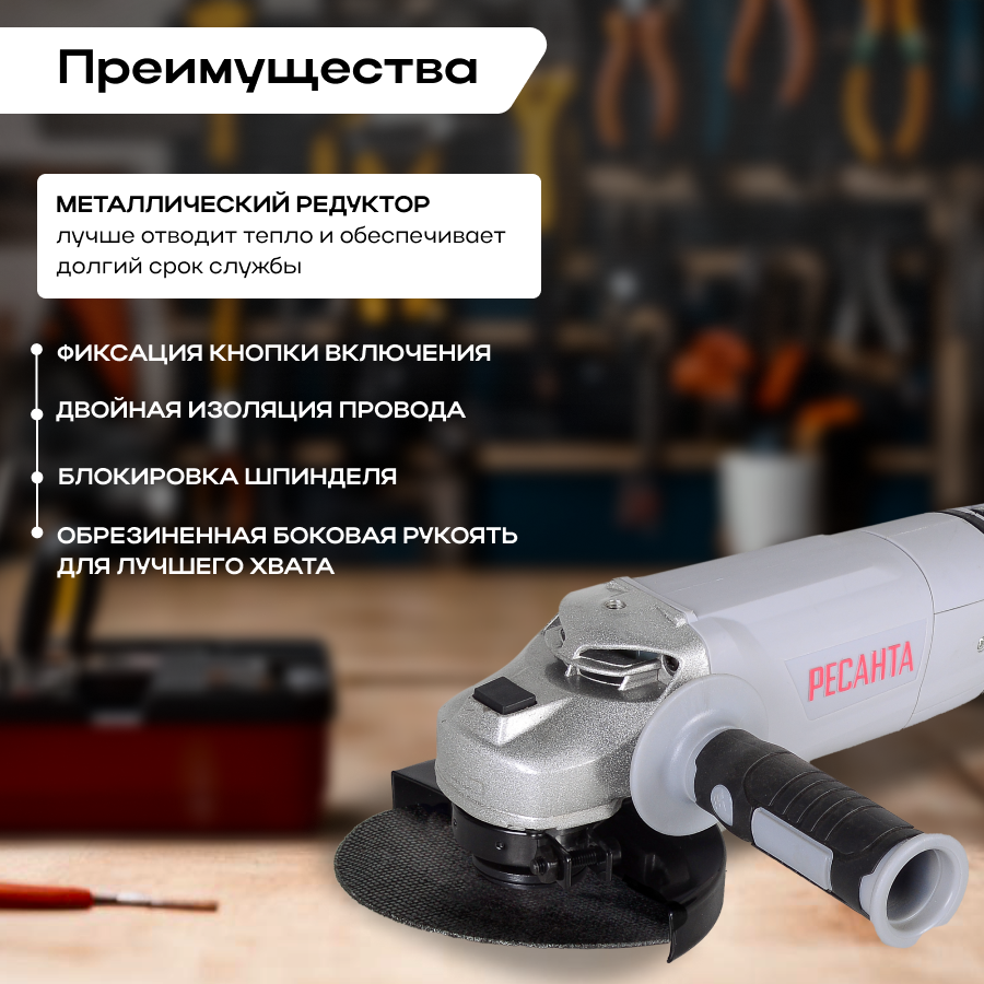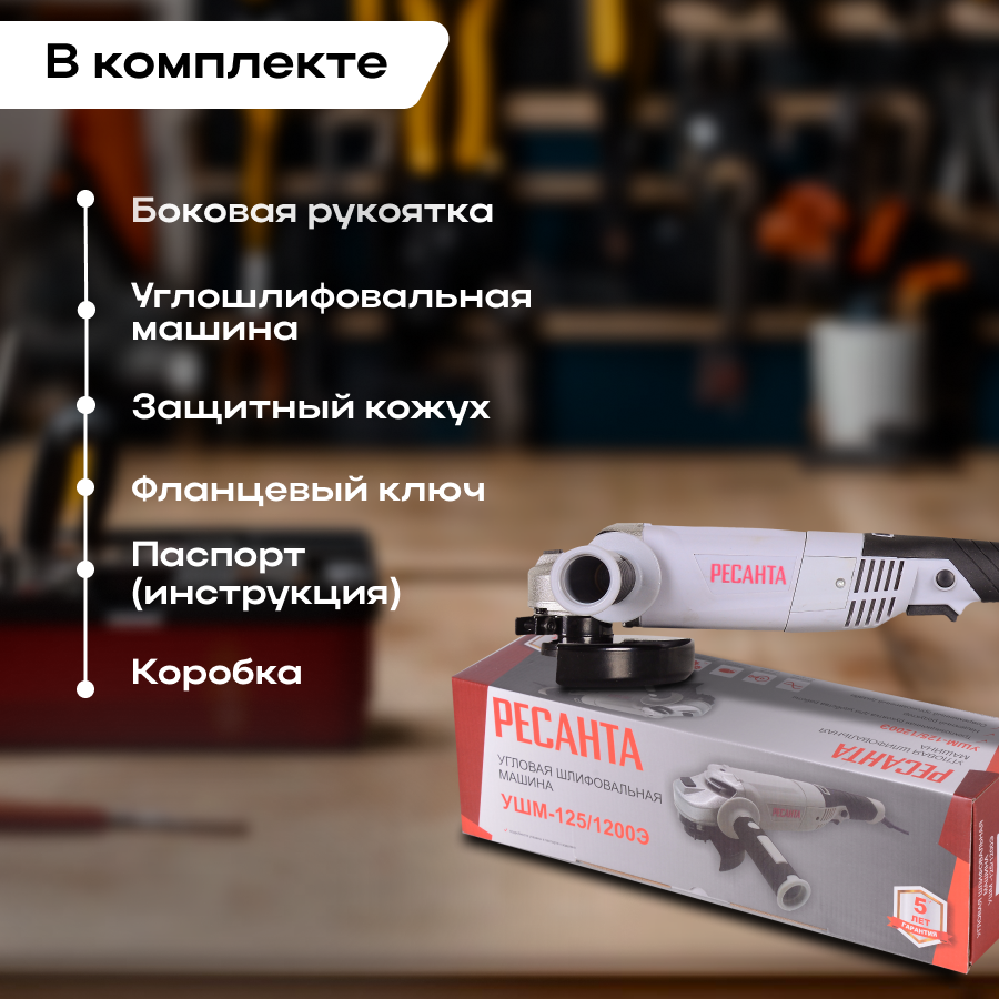 Углошлифовальная машина УШМ-125/1200Э Ресанта (болгарка), 1200Вт, 125мм интересное:
