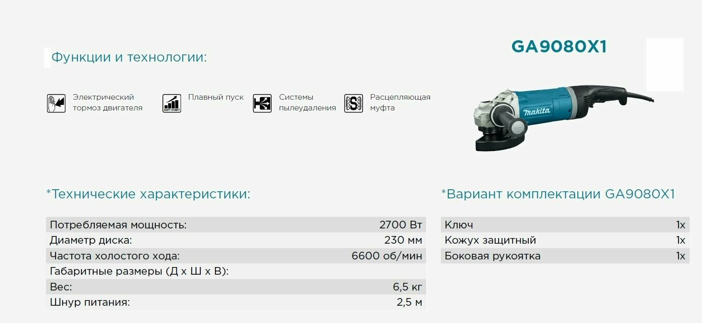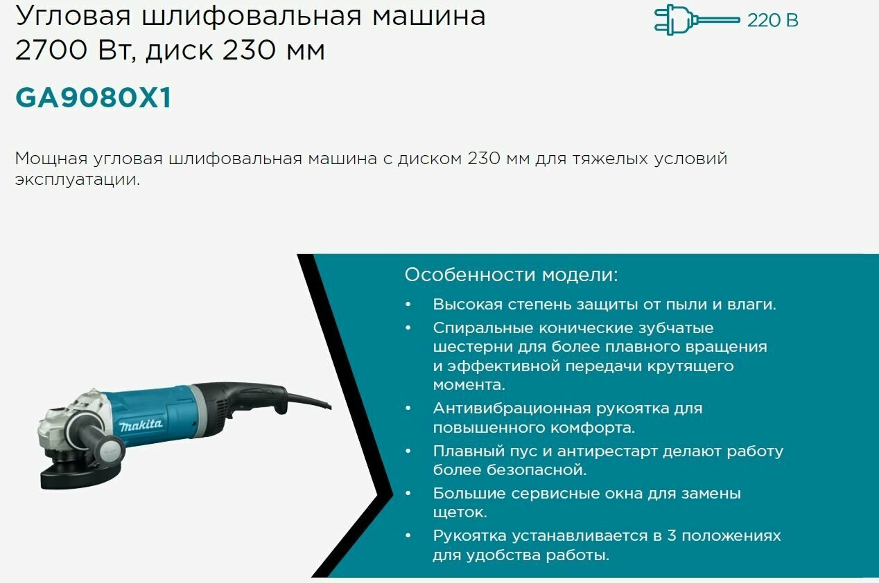 Makita Шлифмашина УШМ GA9080X1 интересное: