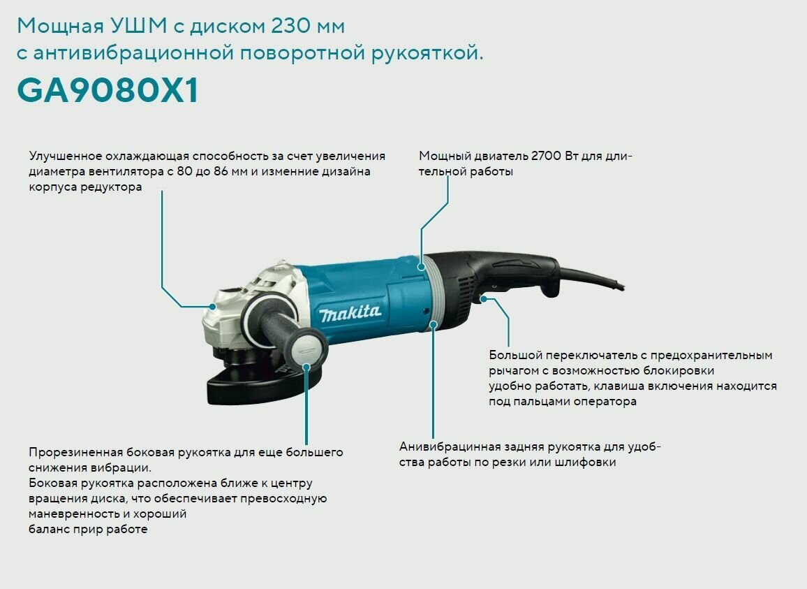 Ниже Вы можете прочитать отзывы на Makita Шлифмашина УШМ GA9080X1, ознакомится с подробными характеристиками, посмотреть интересные обзоры и фотографии на Makita Шлифмашина УШМ GA9080X1.