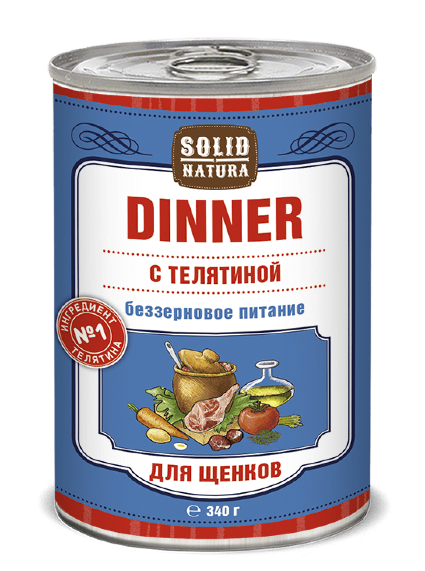 Влажный корм для щенков, Solid Natura Dinner, телятина, упаковка 6 шт х 340 г