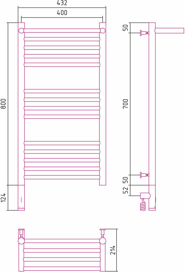 Полотенцесушитель Электрический Тругор Пэк сп 5 П 60х50 черный ВГП