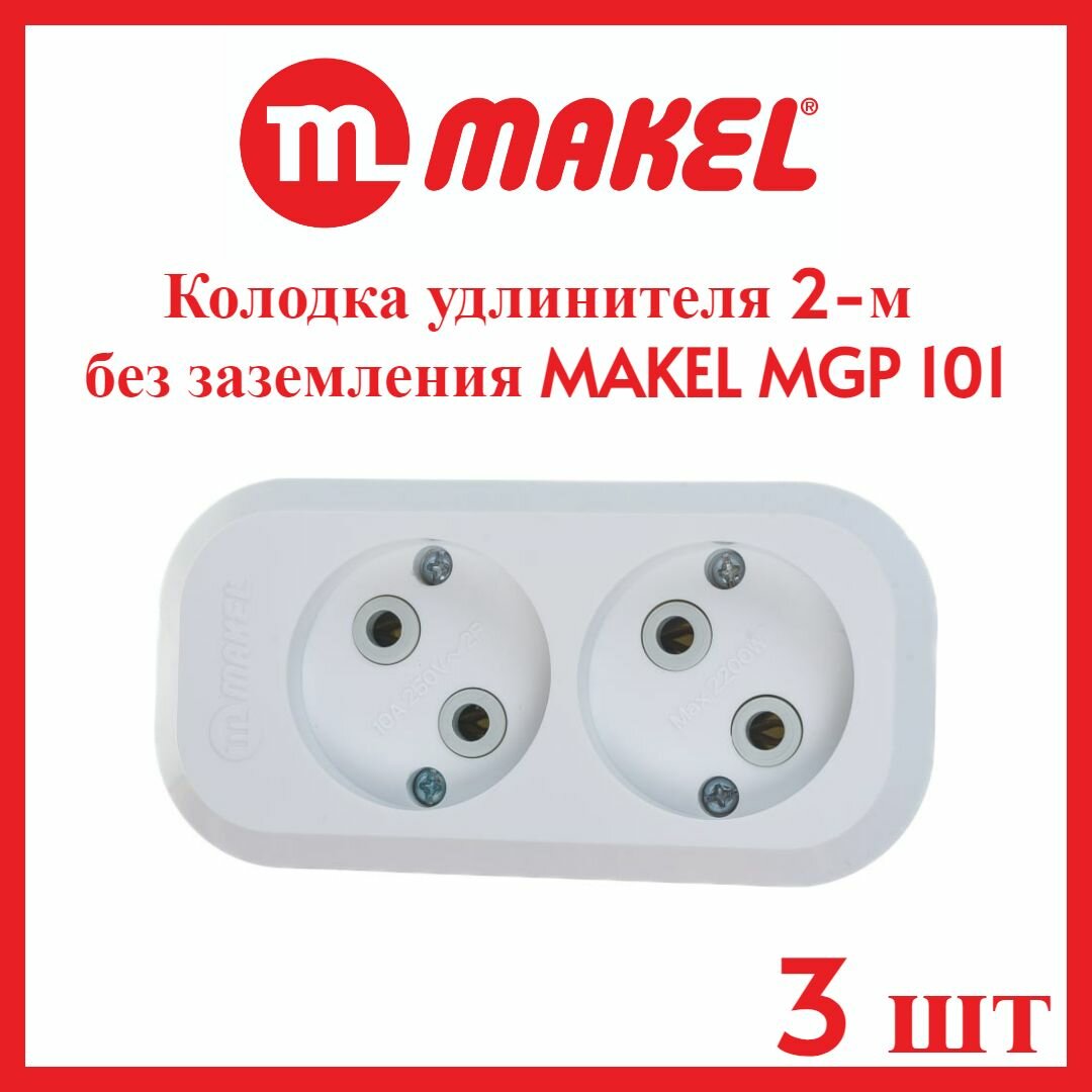 3шт. - Колодка удлинителя 2 гнезда без заземления / Makel; арт. MGP101; оригинал / - комплект 3шт
