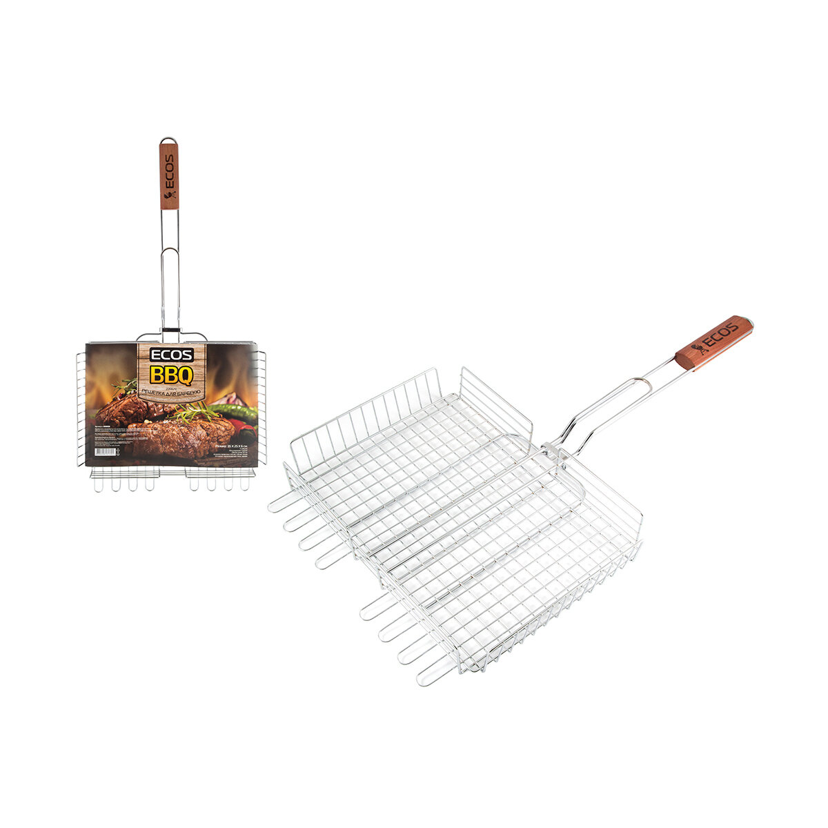 Купить Решетка-гриль Ecos, с деревянной ручкой, 35 х 25 х 6 см