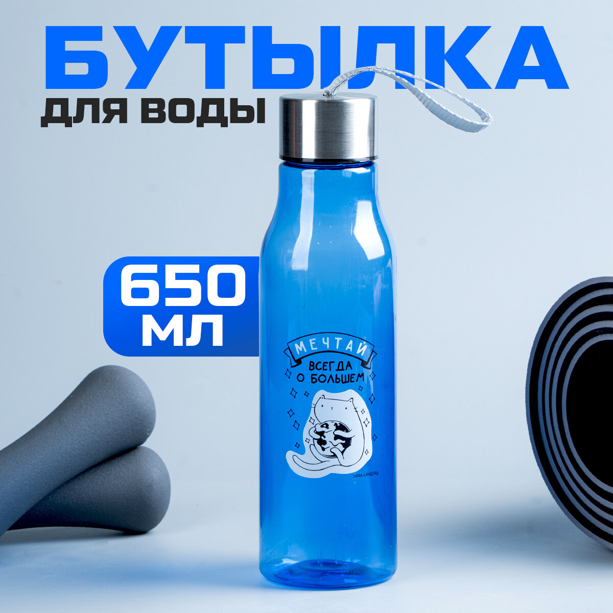 СохранитьБутылка для воды спортивная «Мечтай», 650 мл, пластик, синий интересное: