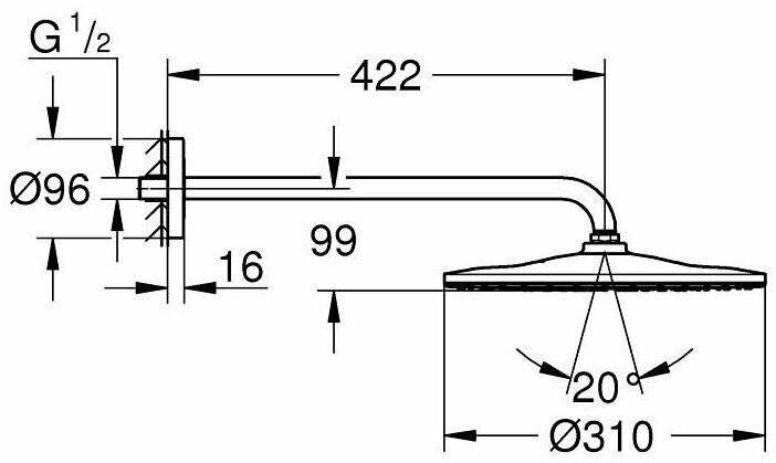 Верхний душ с кронштейном Grohe Tempesta 250 26663000