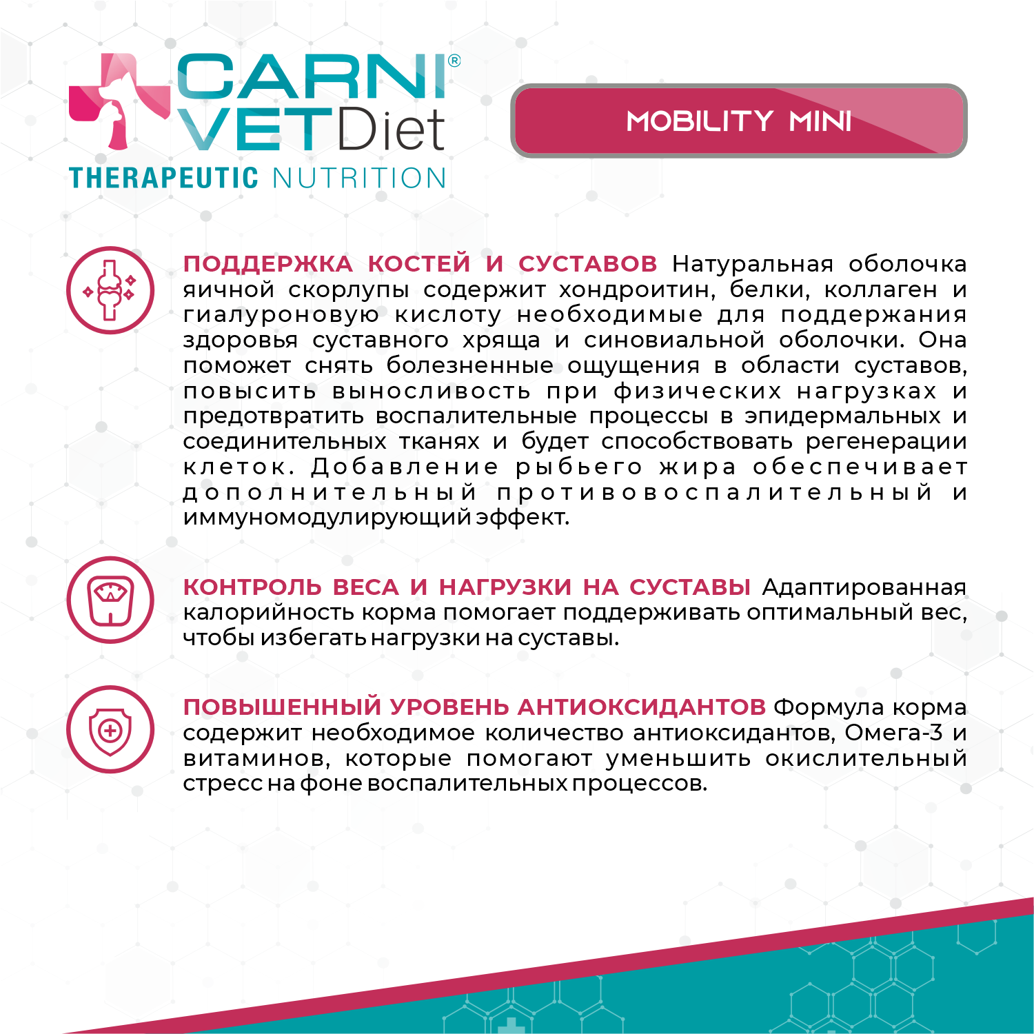 Купить Корм для собак мелких сухой CARNI VET Diet Mobility Mini Поддержание работы суставов, 2.5кг