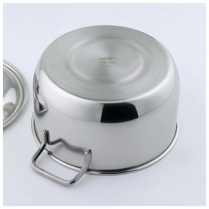 Кастрюля из нержавеющей стали Амет Классика с крышкой диаметр 20см, 3л / посуда для газовых и электрических плит