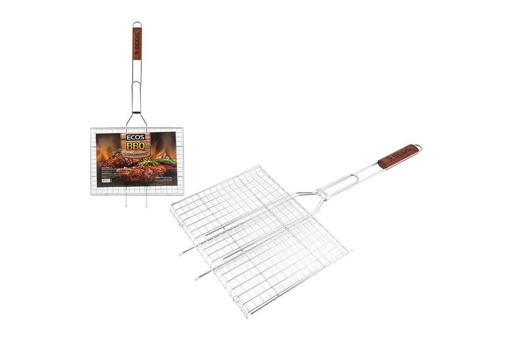 Решетка для барбекю ECOS RD-117W (рыбная, 3 секции, р-р 28х28х1,5см, общая длина 63 см, хром.)