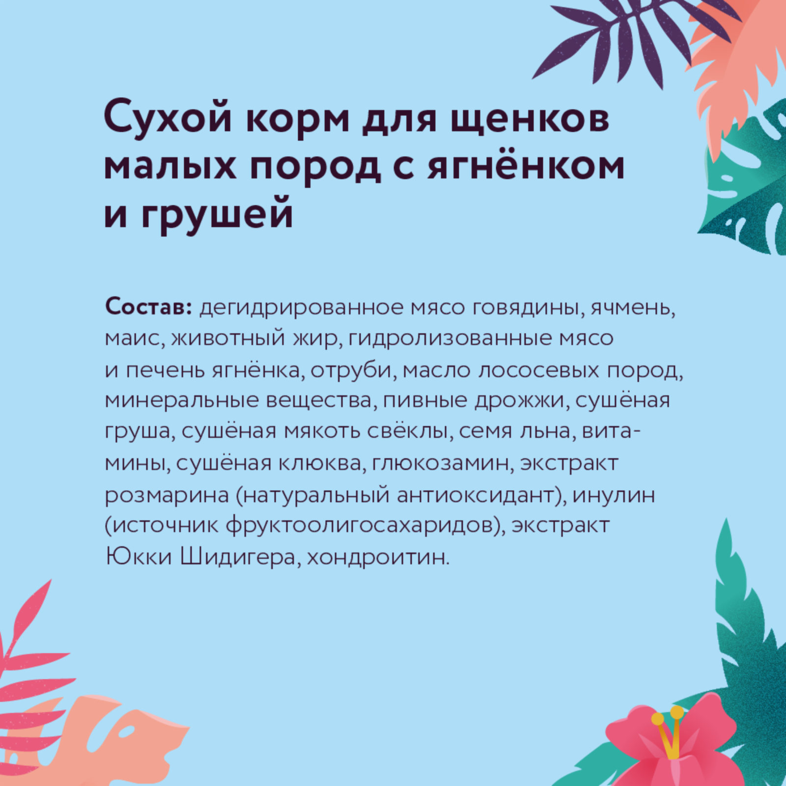 Сухой корм для щенков малых пород с ягненком и грушей 3 кг