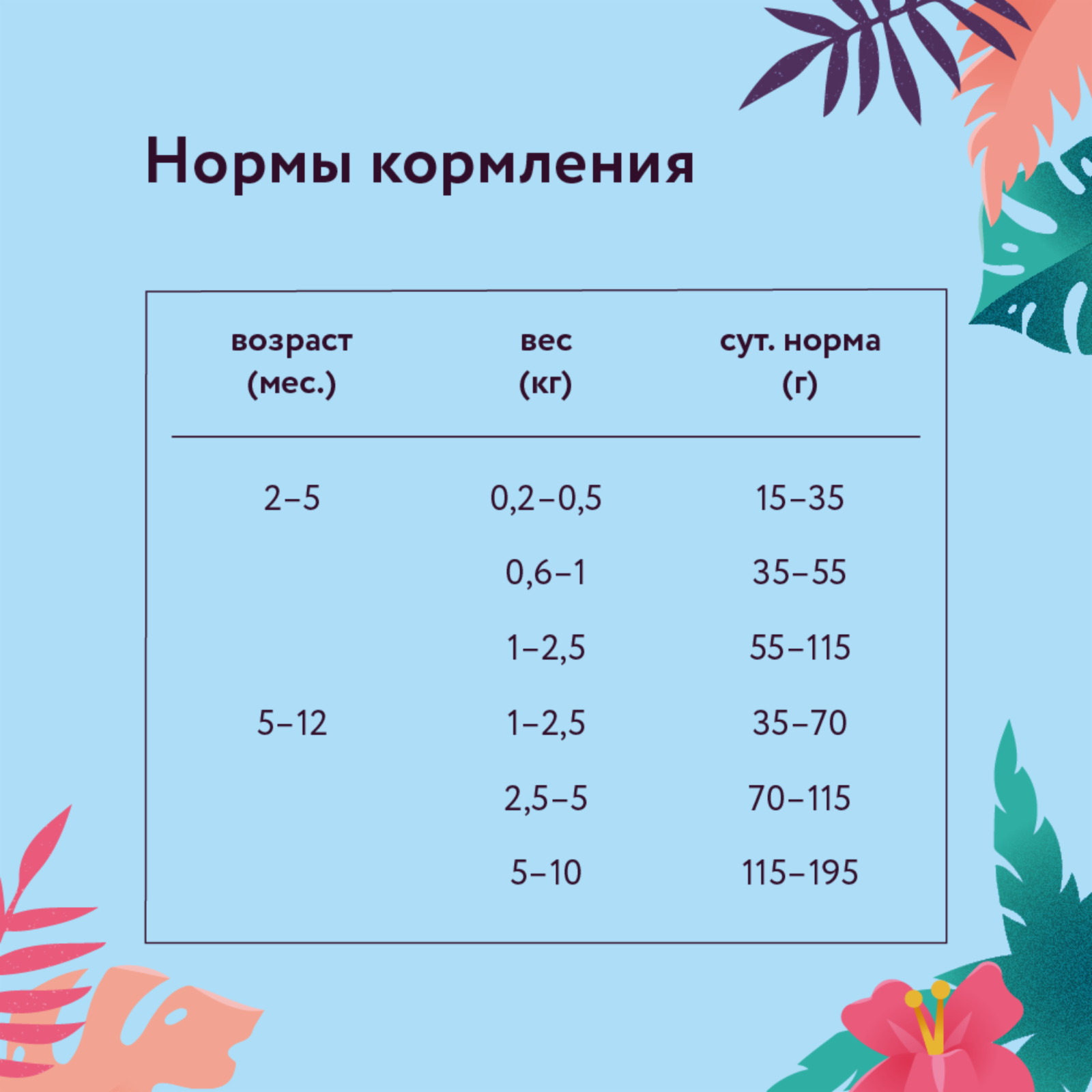 | Особые потребности | для беременных/кормящих / для определенных пород / при чувствительном пищеварении |