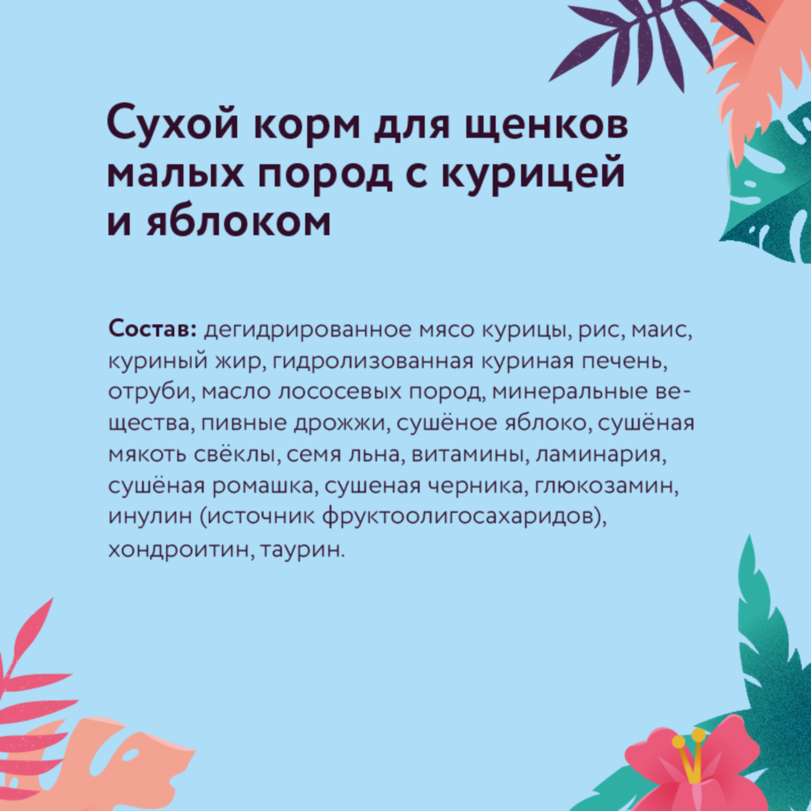 Сухой корм для щенков малых пород Florida курица, яблоко, 1 кг