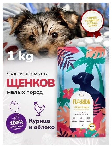 Сухой корм для щенков малых пород Florida курица, яблоко, 1 кг