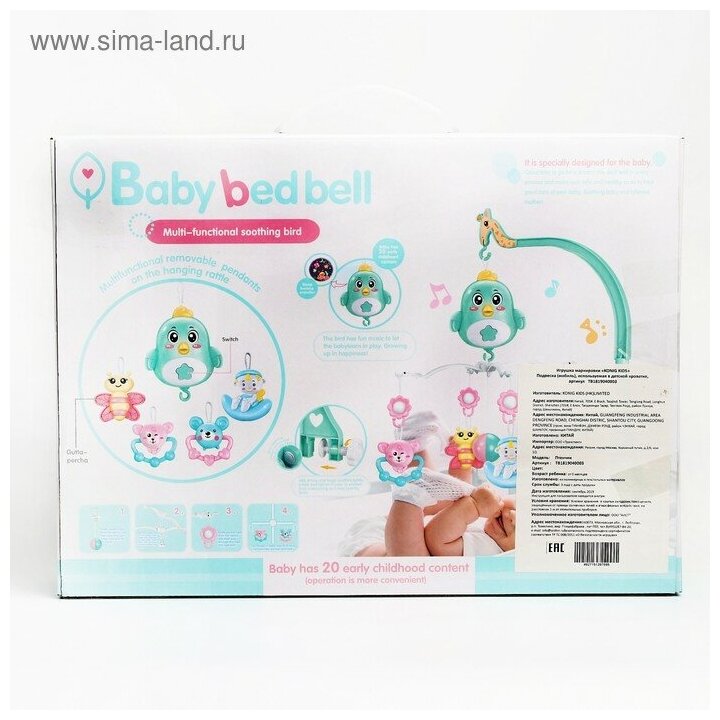| Дополнительная информация | количество подвесных игрушек: 4; количество мелодий и звуков: 70; проектор |