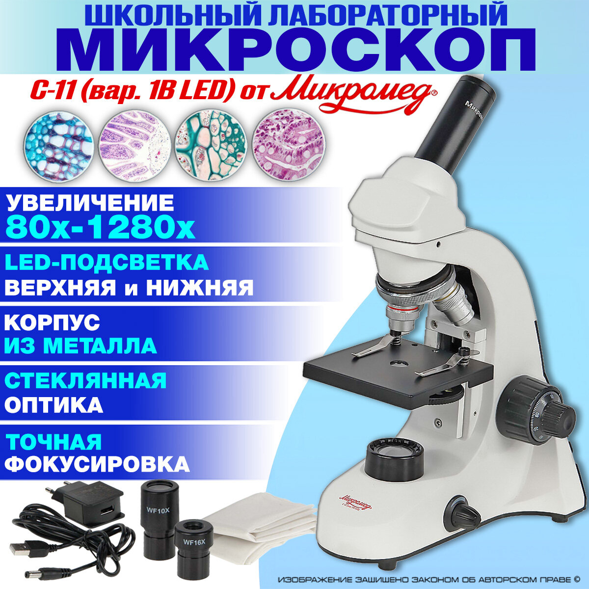 Купить Микроскоп монокулярный школьный биологический Микромед С-11 (вар. 1B LED) 80-1280x
