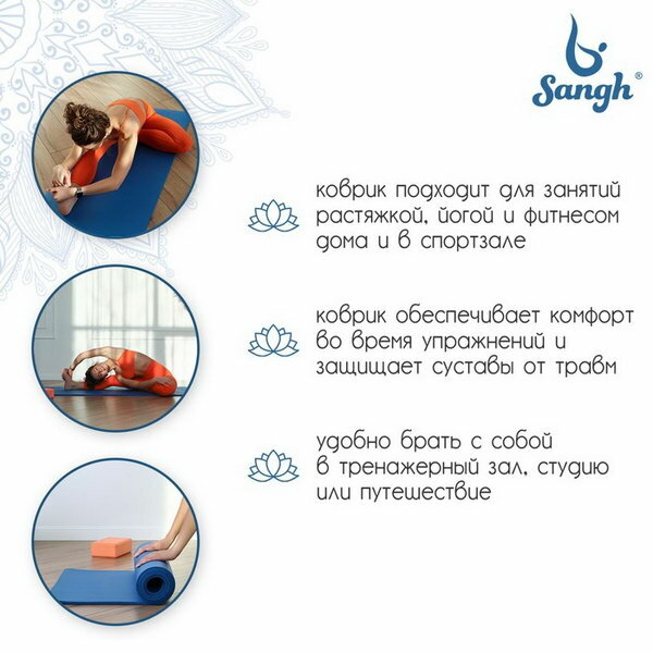 Коврик для йоги Sangh, размер183 х 61 х 1 см, цвет синий