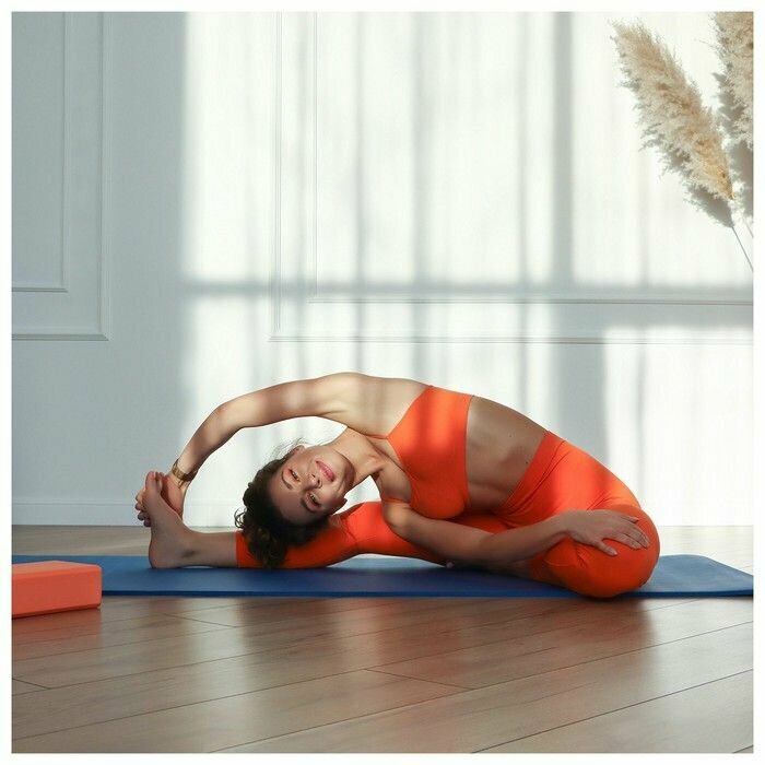 Коврик для йоги Sangh нескользящий, размер 183х61 см, толщина 1 см, материал NBR, цвет синий интересное:
