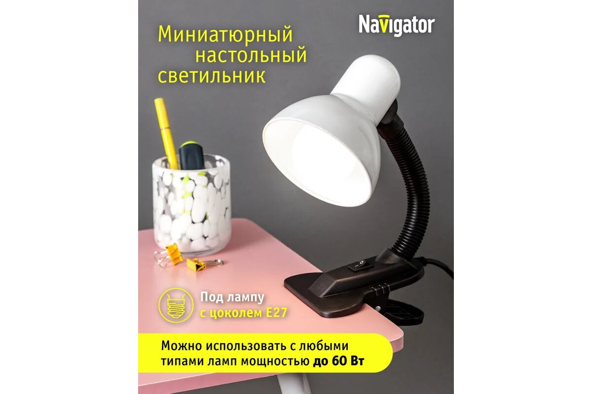 Светильник настольный Navigator 61 639 NDF-C011 под лампу E27, прищепка, белый