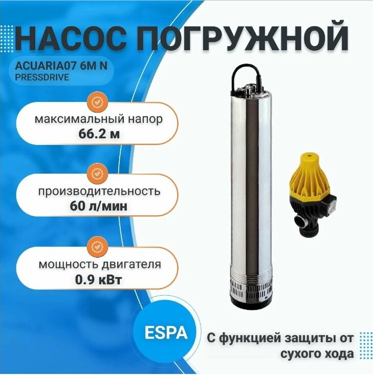 Насос погружной (колодезный),Espa, ACUARIA07 6M N PRESSDRIVE, 900 Вт, напор 66,2 м
