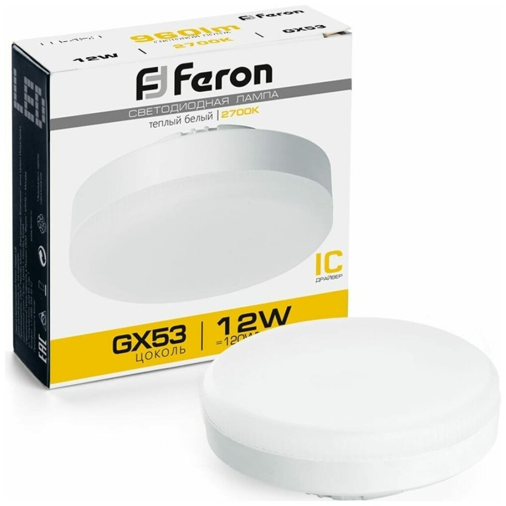 Лампа светодиодная GX53 Feron Таблетка, 12Вт, 6400К, лампочка 1 шт. 25868