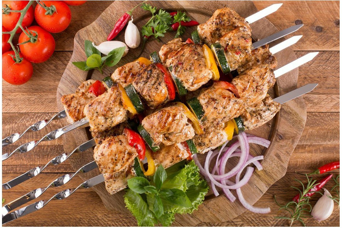 Набор шампуров с деревянной ручкой 62 см с ножом для снятия шашлыка