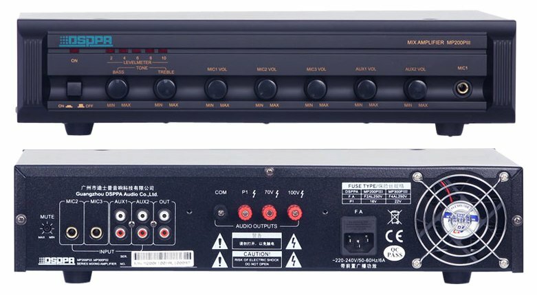 DSPPA MP-200P Микшер-усилитель 60 Вт\100В, 3 микр, 2 Aux входа, 1 Aux вых, питание 220В. Габаритные размеры 483х88х345 мм. Масса 10 кг интересное: