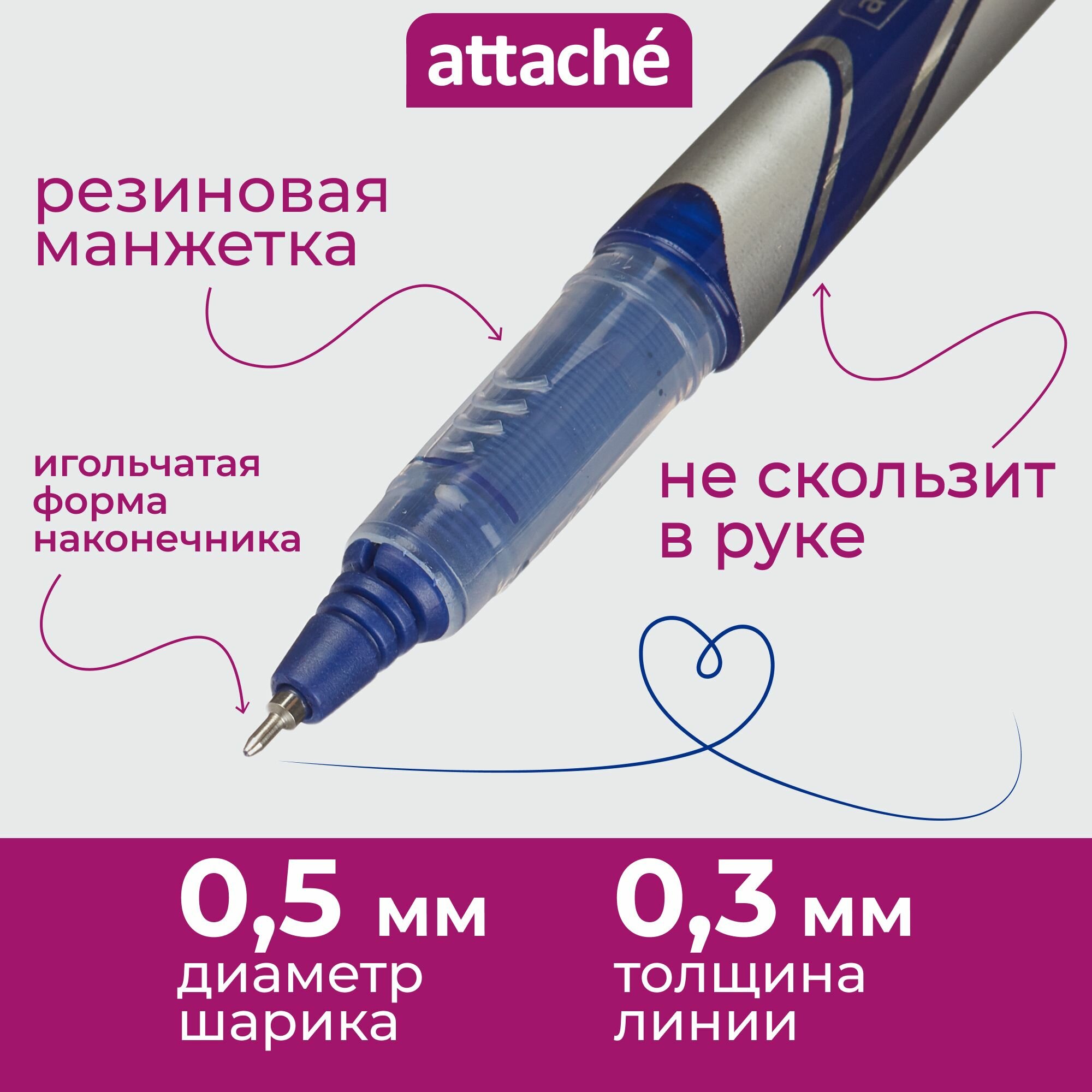 Роллер RX302602 игольчат. након. 0.3мм синий Attache 253739