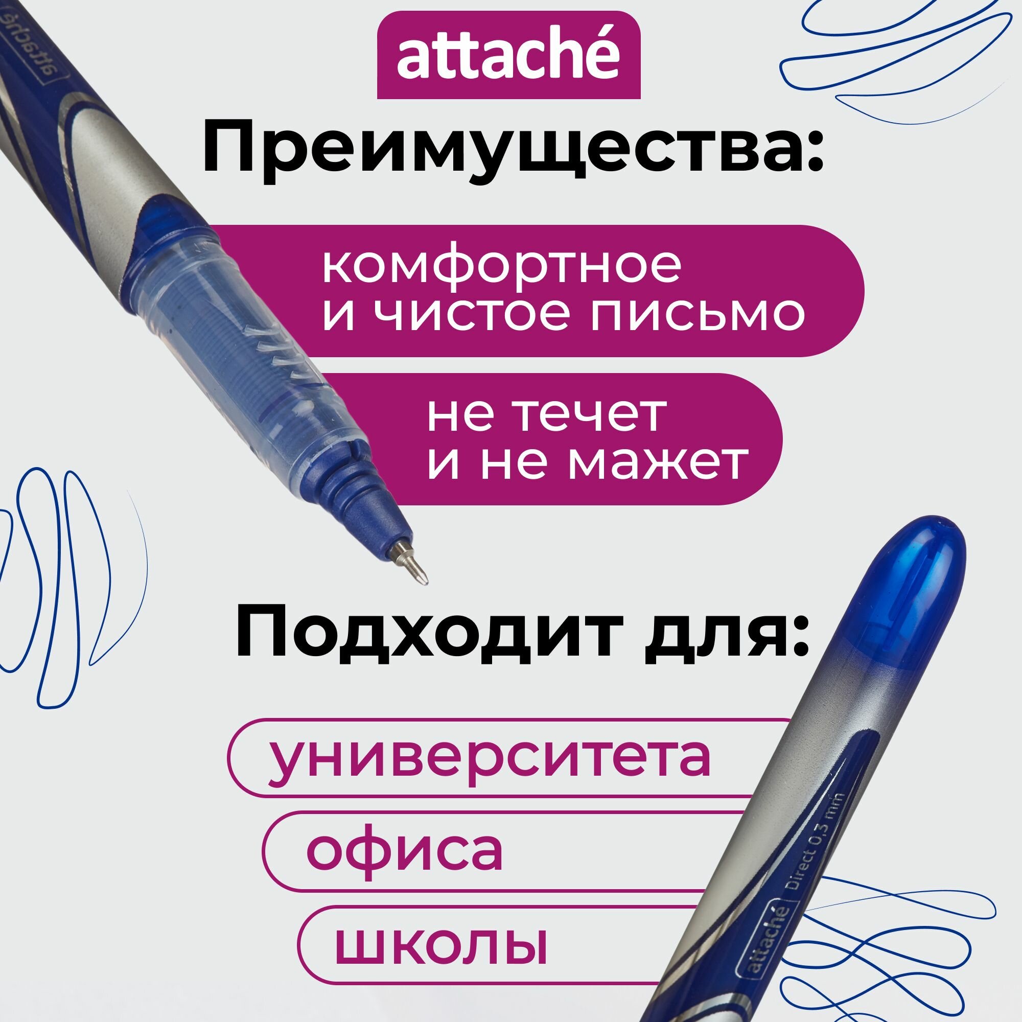 Ниже Вы можете прочитать отзывы на Ручка роллер синяя Attache Direct, линия письма 0.3 мм, 12 штук, ознакомится с подробными характеристиками, посмотреть интересные обзоры и фотографии на Ручка роллер синяя Attache Direct, линия письма 0.3 мм, 12 штук.