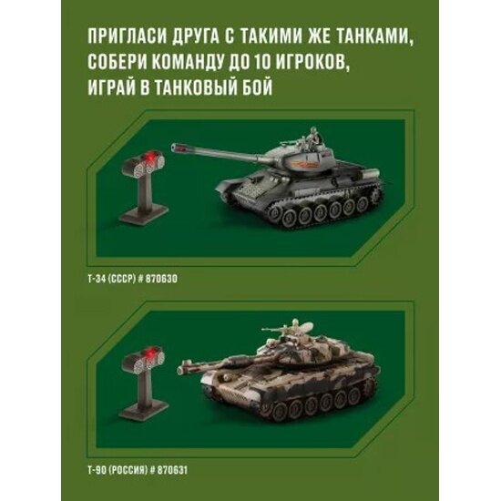Танк радиоуправляемый 1:24 Т-90 (Россия), аккумулятор, тренировочная мишень с индикаторами жизни, мина со светом, звук Crossbot 870631