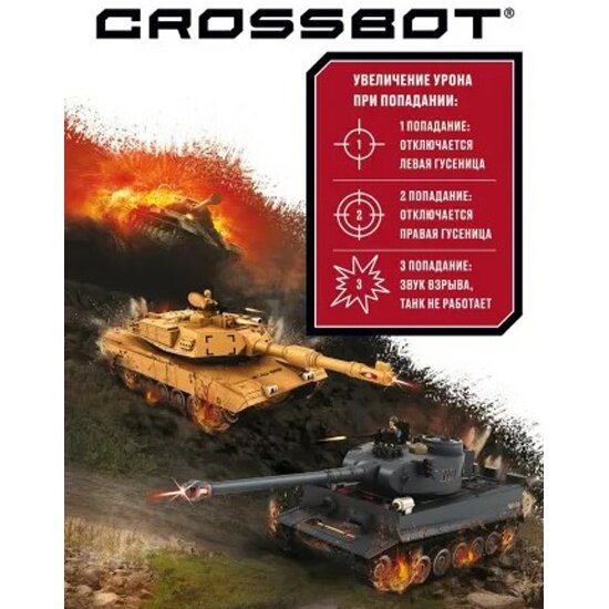 Радиоуправляемый танк Crossbot 1:24, Т-90, тренировочная мишень, мина со светом, звуком (870631)