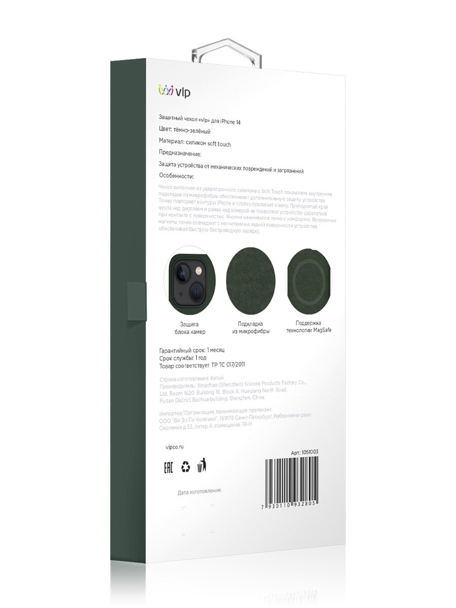 Купить Чехол на iPhone 14 с MagSafe VLP, темно-зеленый