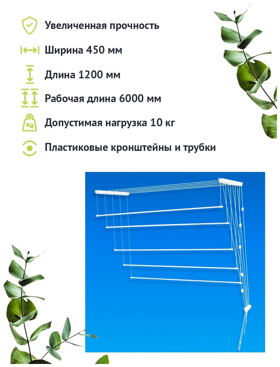 Потолочная сушилка "Лиана", 5 линий, рабочая длина 6 м, нагрузка до 12кг, белая интересное: