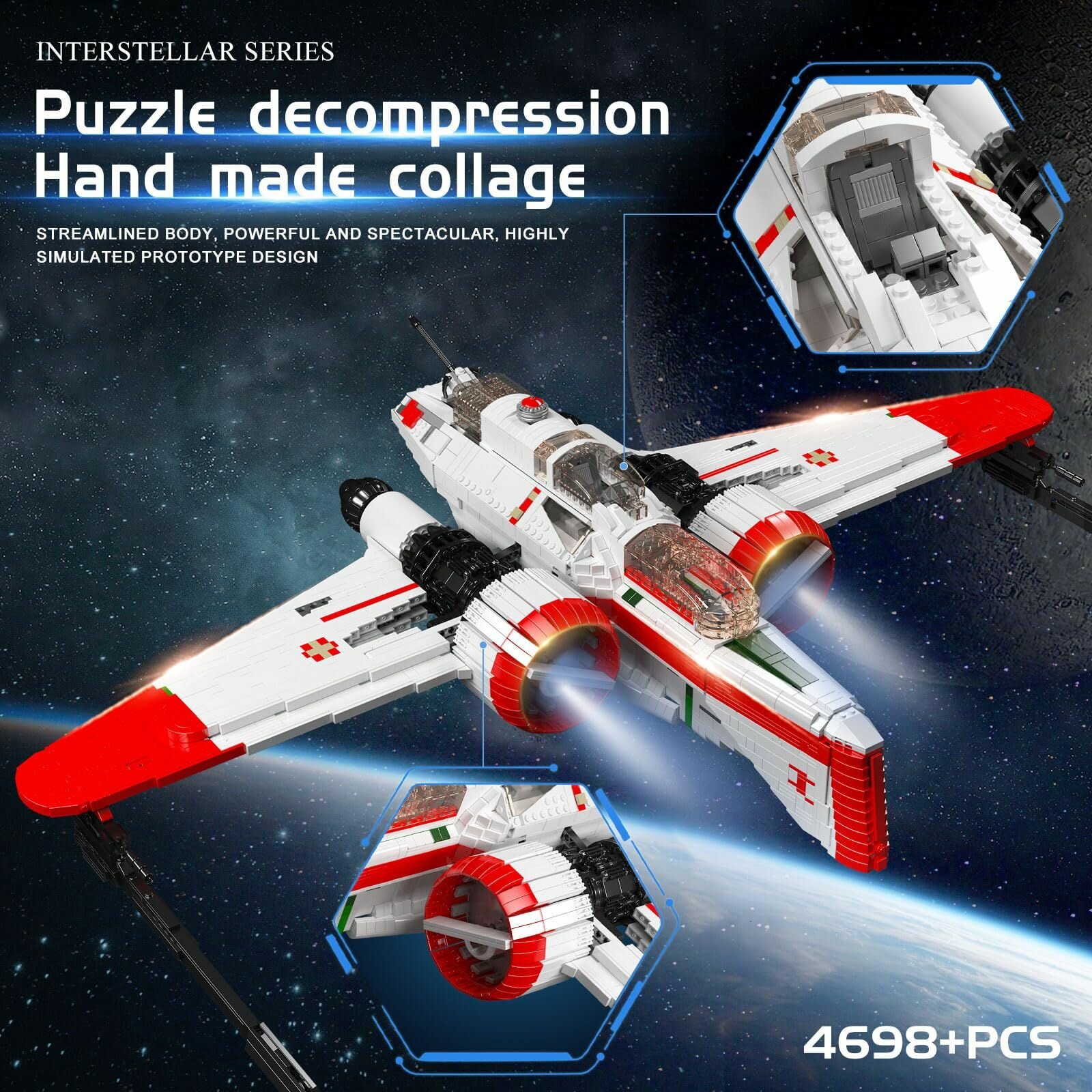 Конструктор Mould King 21072 Звёздные истребители типа Возрождение, MOC Технологические блоки, 1751 Деталей, Подарок для мальчика, Коллекционные игрушки