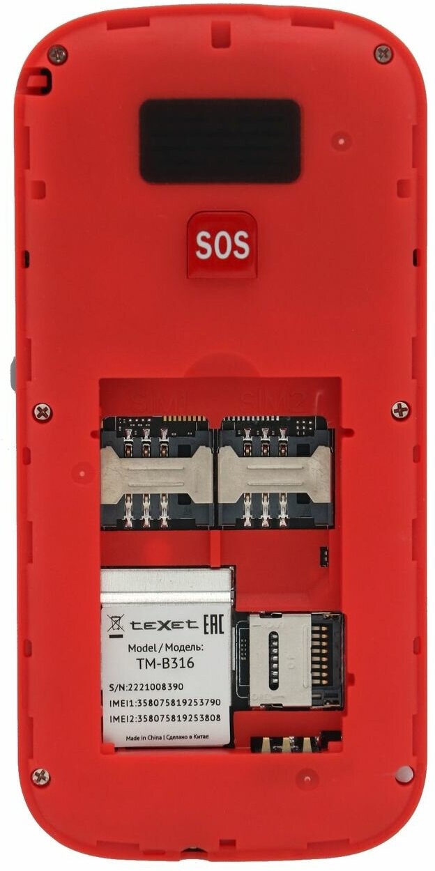 Мобильный телефон TEXET TM-B316 1.77", 2 SIM, черный-красный