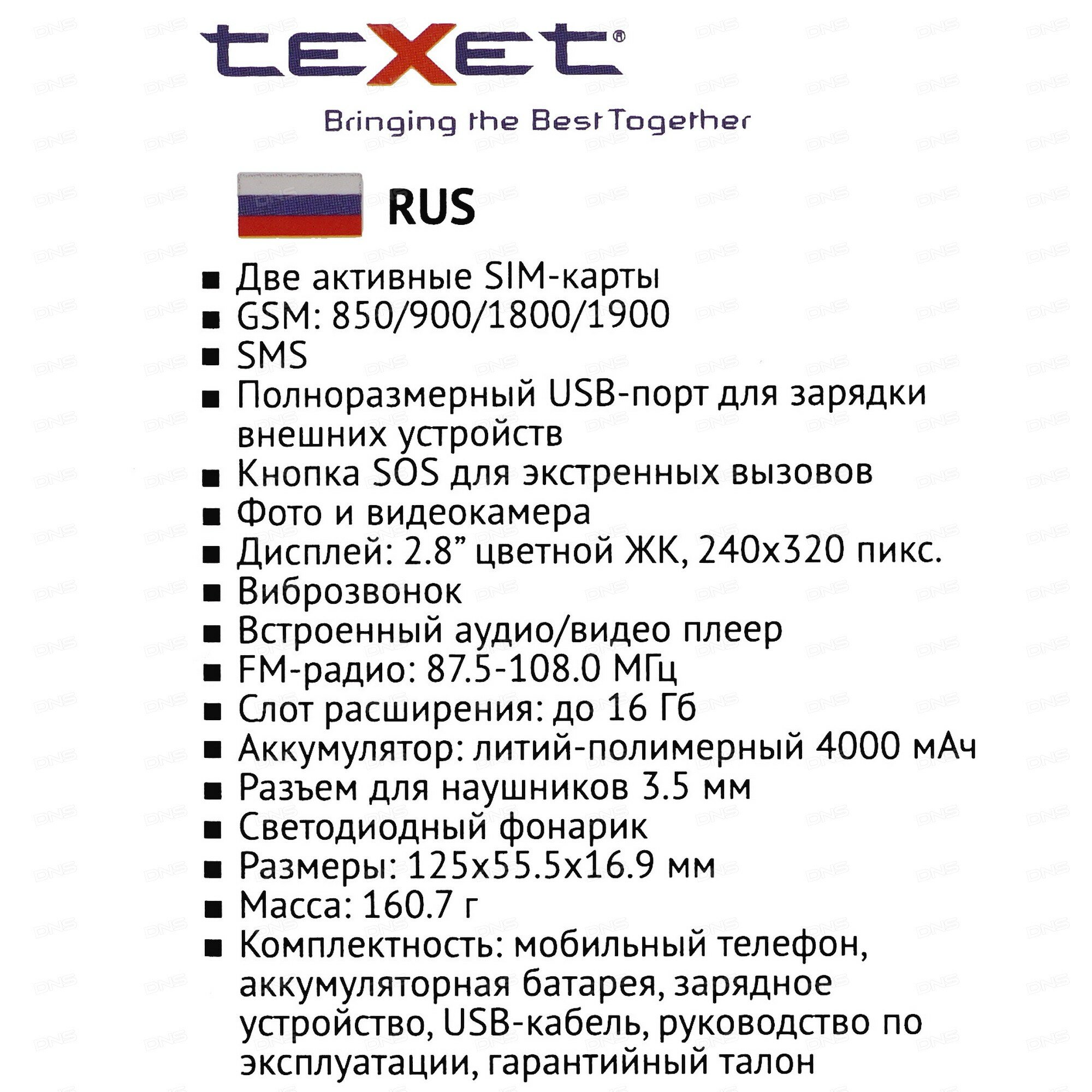 Мобильный телефон teXet TM- D421 2.8", 4000mAh, micro-USB, черный