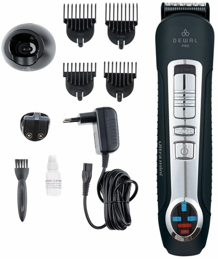 Машинка для стрижки окантовочная Dewal Ultra Mini, аккум/сетевая, 4 насадки, черная