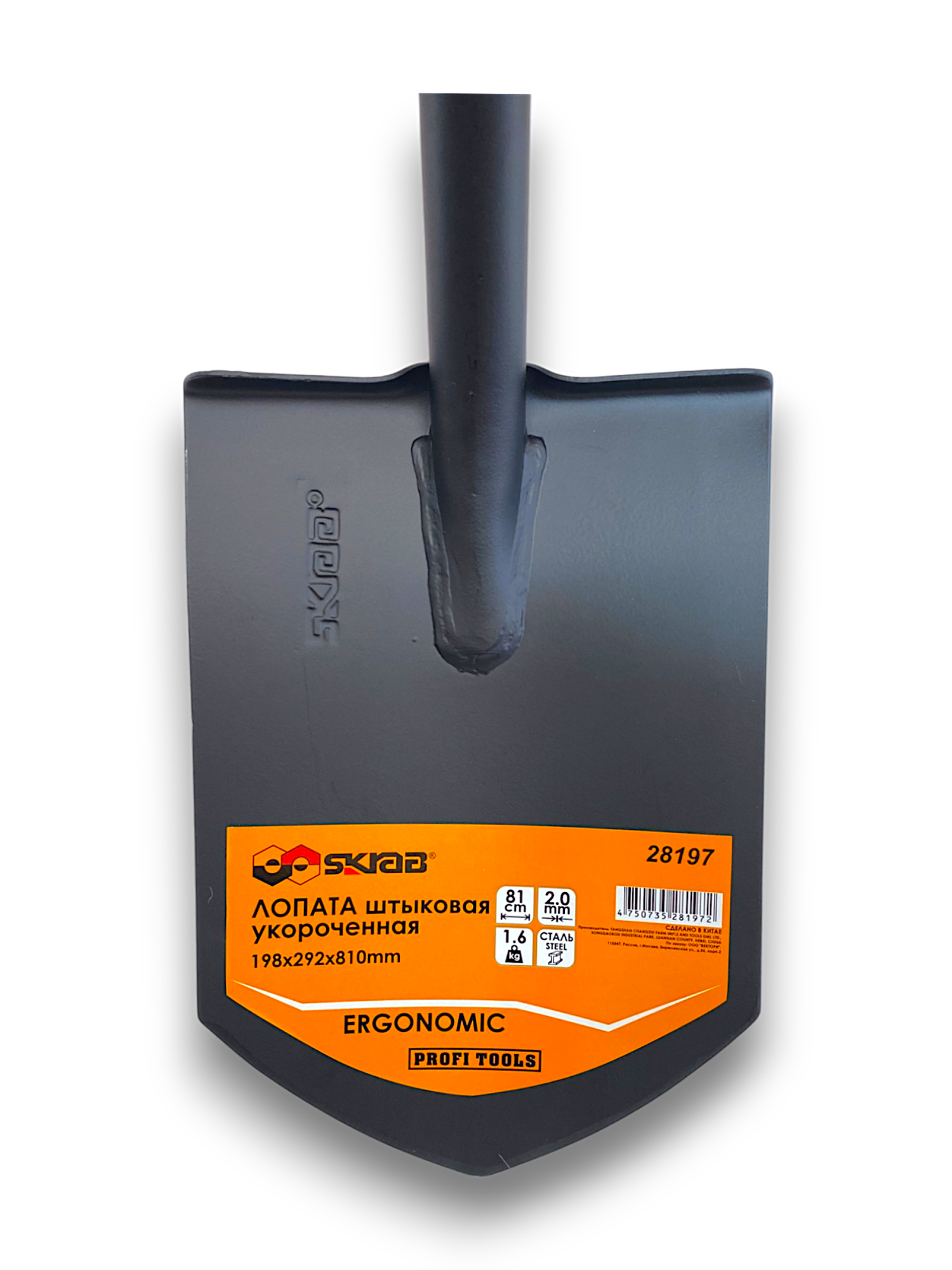 Лопата штыковая 198х292х810мм штыковая укороченная мет.черенок ERGONOMIC 28197