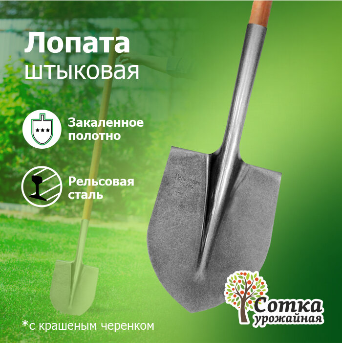 Лопата садовая штыковая ЛКО рельсовая сталь "урожайная сотка" универсальная "Американка" с крашенным деревянным черенком интересное: