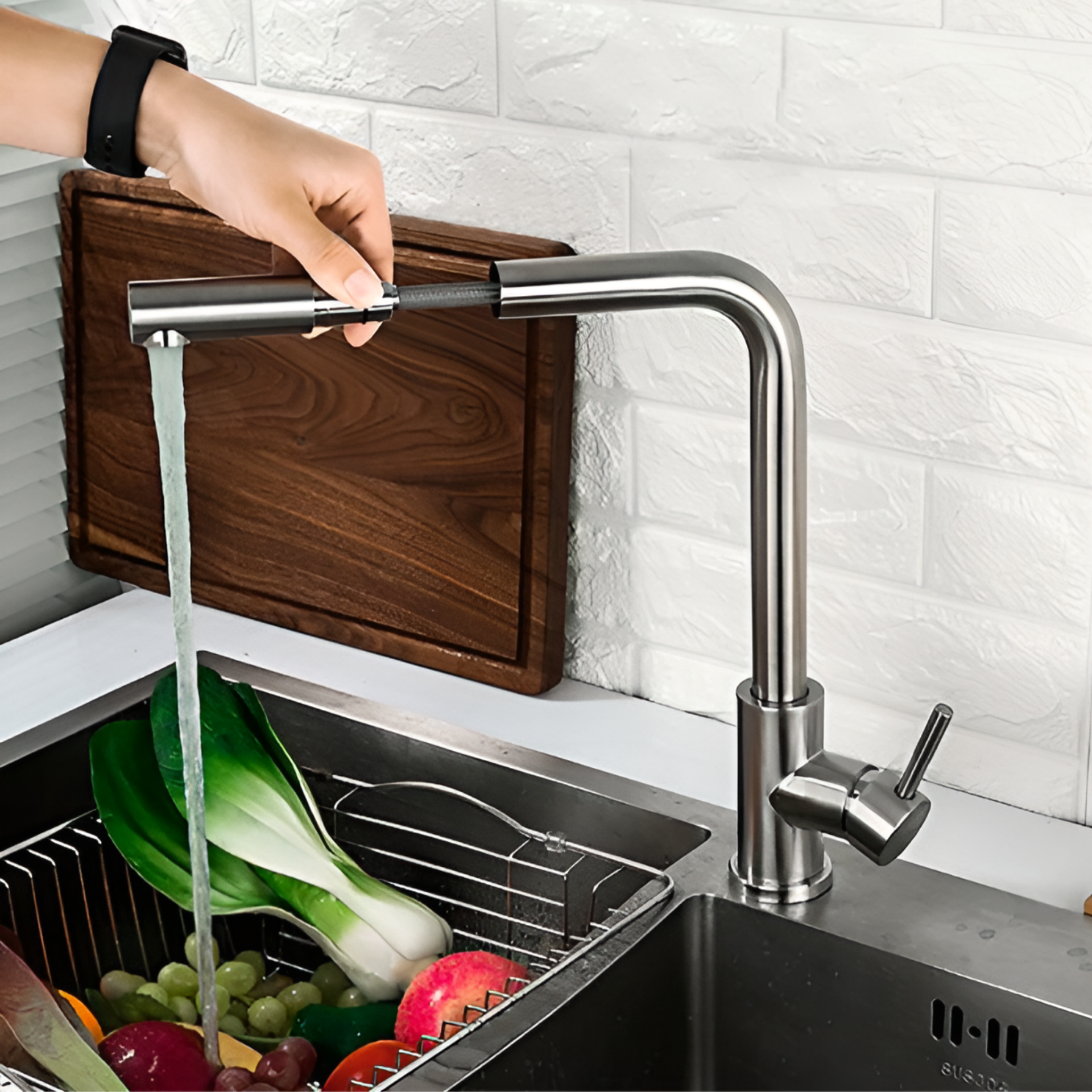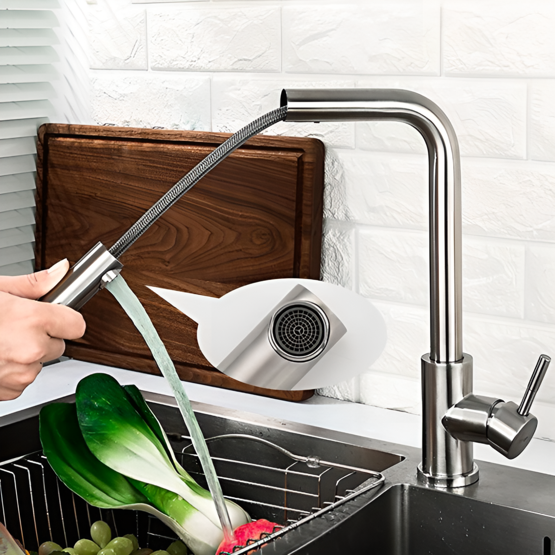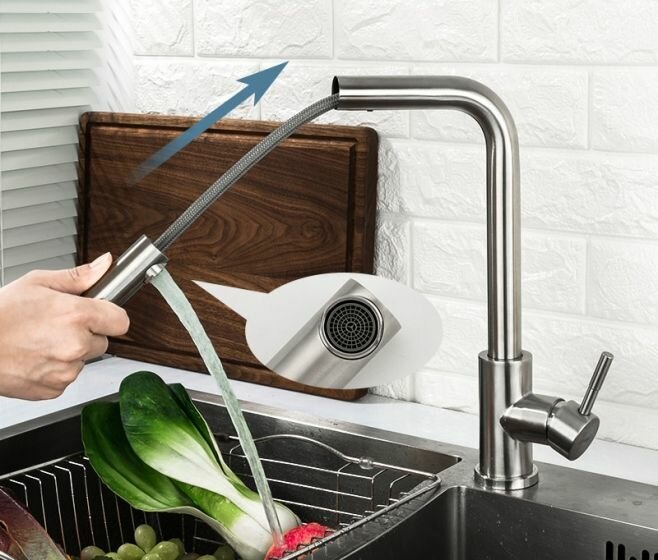 | Плюсы: | Удобен в подключении, регулируется длина выдвижения лейки, доступная цена, почти нет брызг по крайней мере с моей раковиной. |