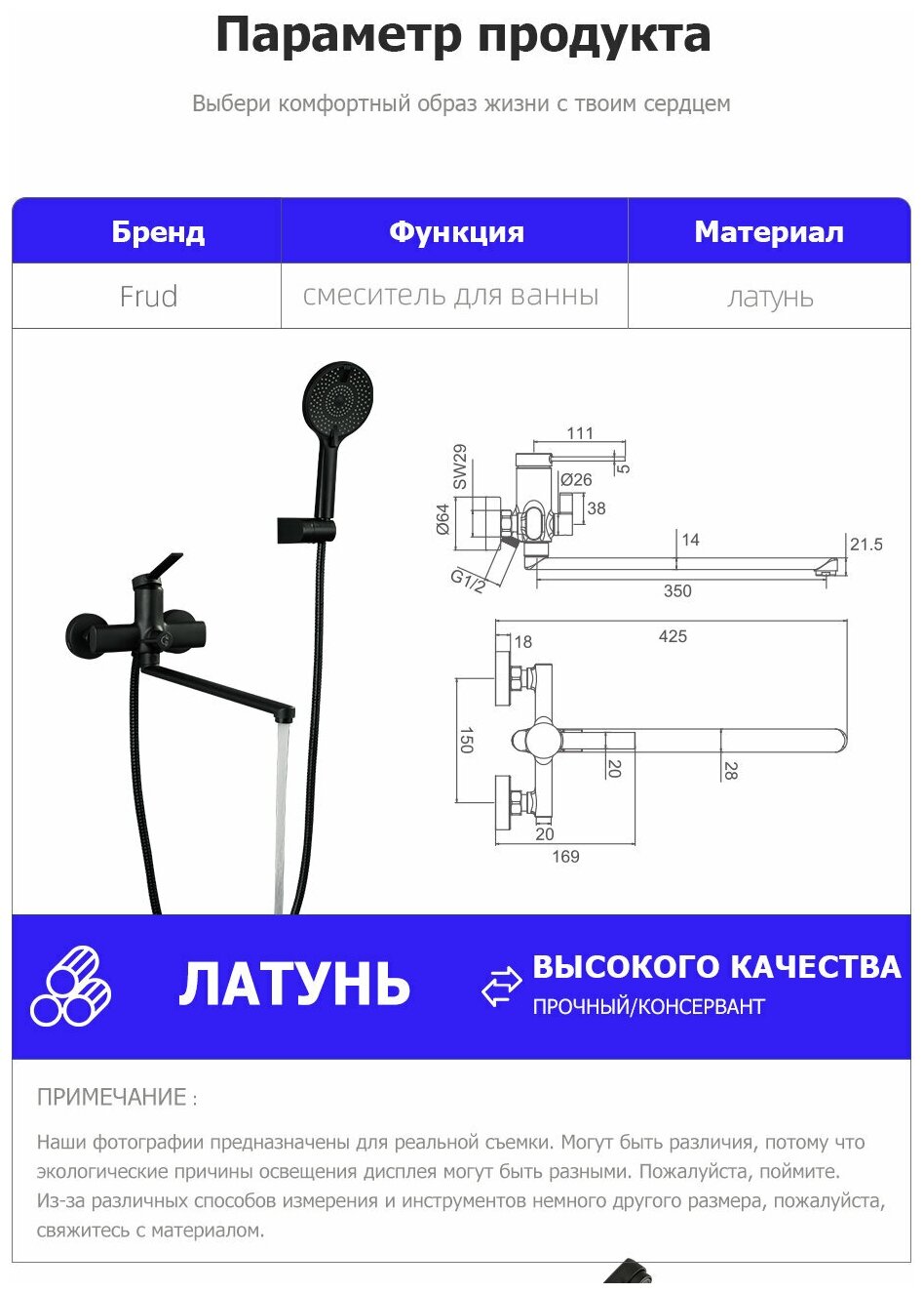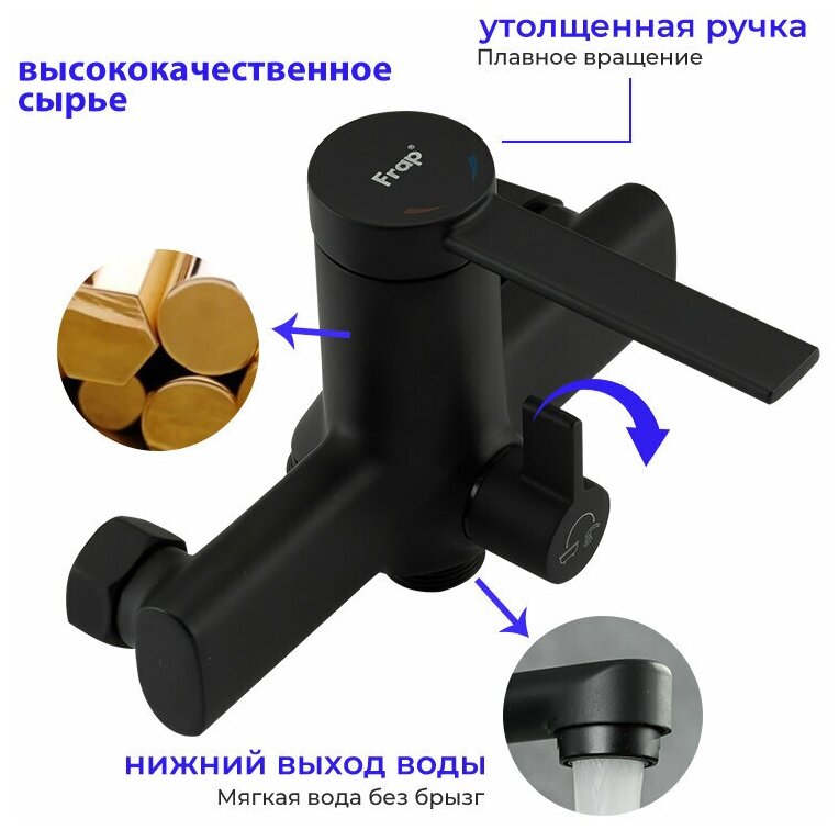 СохранитьСмеситель для ванны с душевой лейкой Frap H67 F2267-6 черный интересное: