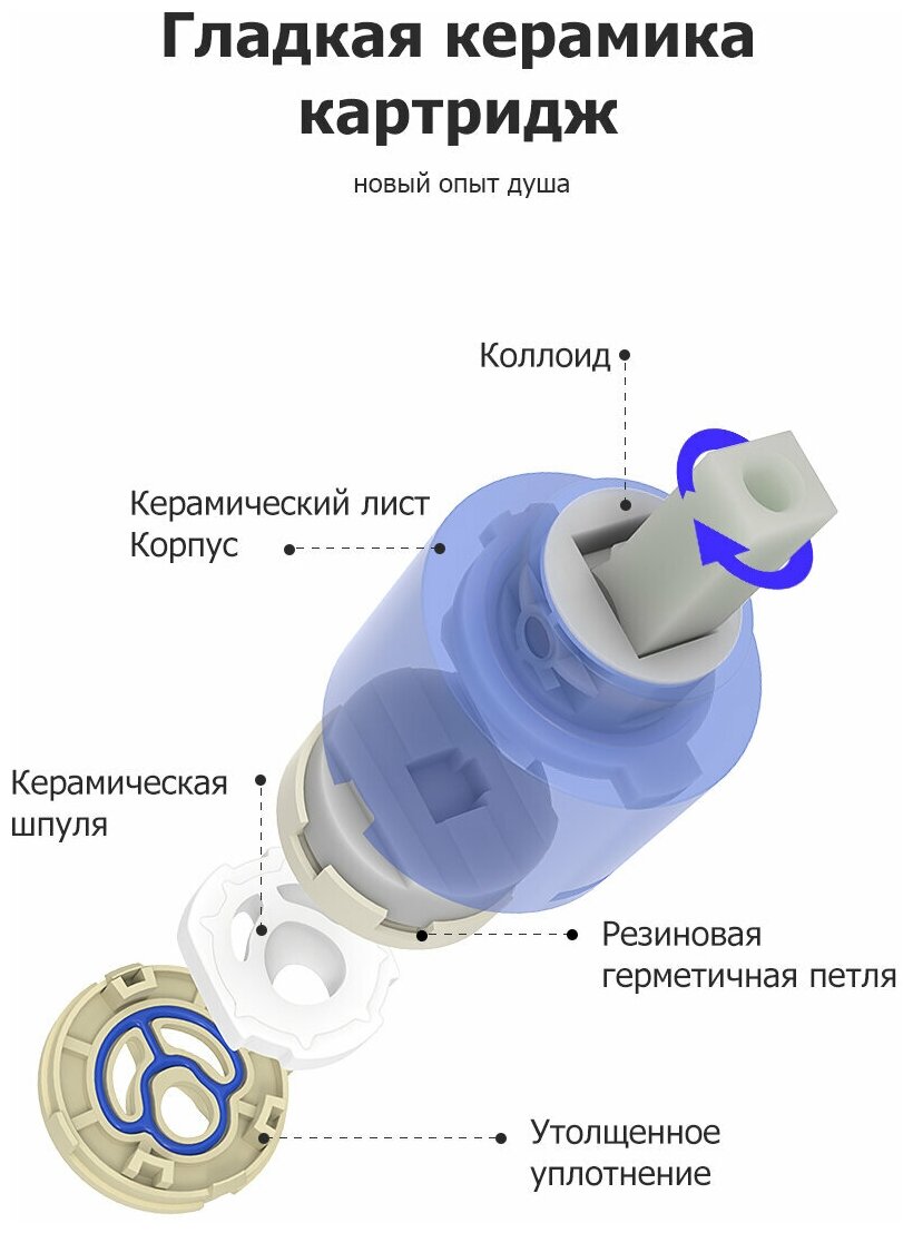 | Дополнительная информация | керамический картридж 35 мм; комплектация: смеситель, душевой шланг 150 см, душевая лейка, держатель лейки, комплект отражателей, комплект эксцентриков |