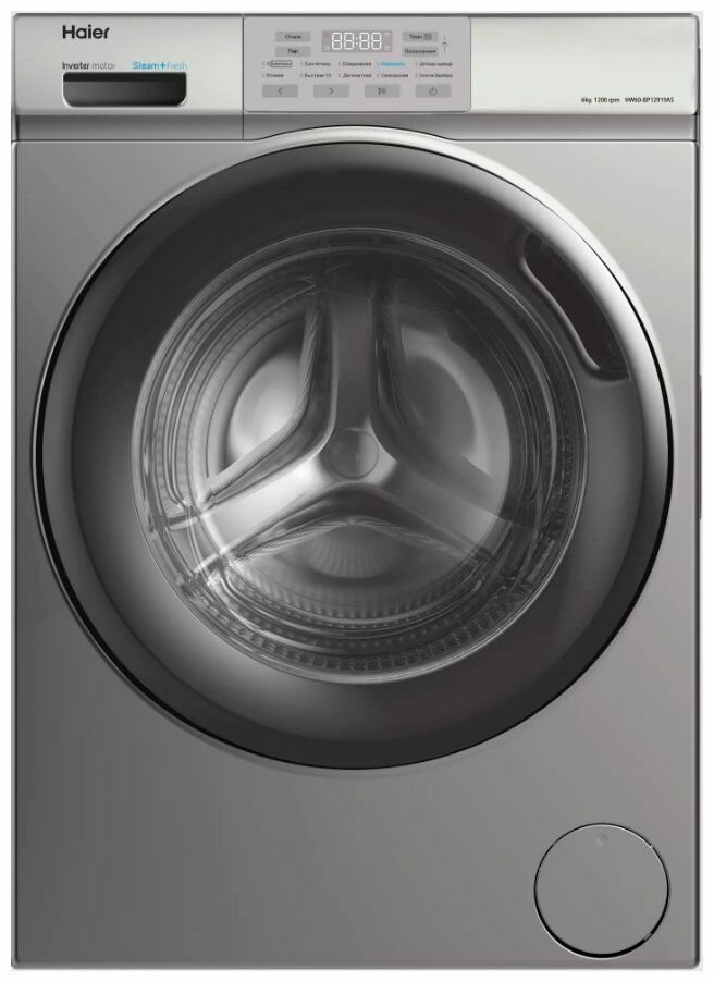 Стиральная машина узкая Haier HW60-BP12919AS с фронтальной загрузкой, 6 кг, серебристый (DO) интересное: