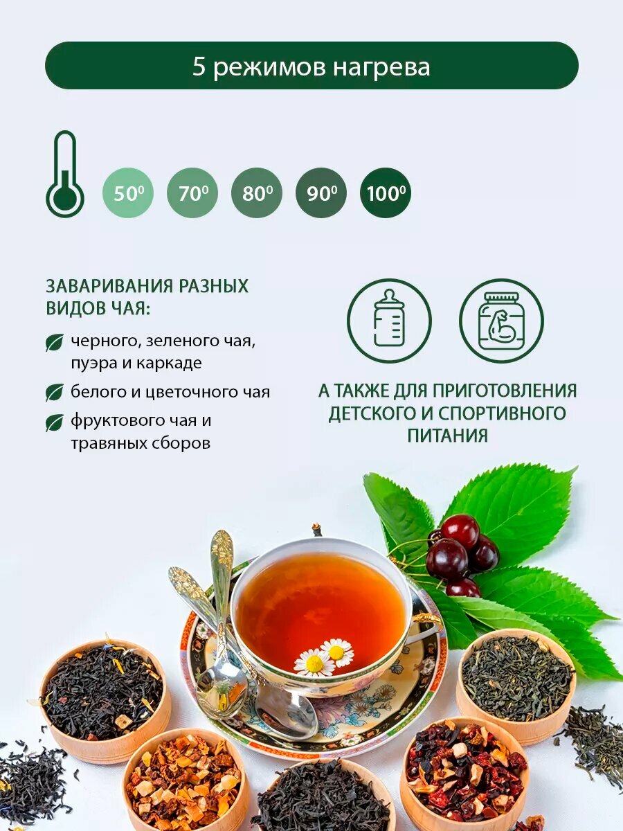 | Отзыв: | Купил этот чайник взамен старому когда сломался, выбрал именно эту модель тк у него 5 режимов работы и это удобно. Травяной чай поскольку лучше заваривать при 80 градусов, не более поскольку больше веществ сохраняется полезных. Металл из нержавеющей стали и корпус сам прочный, надеюсь чайник прослужит долго, выбором своим однозначно доволен. Воду нагревает он быстро. |