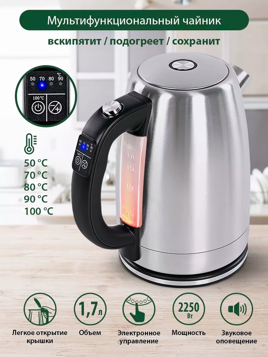 Чайник металлический с контролем температур, умный 1.7 л