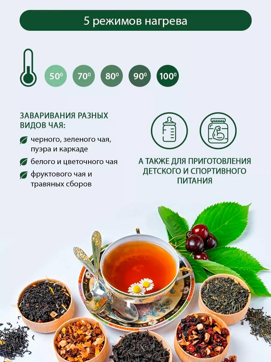 | Отзыв: | Купил этот чайник взамен старому когда сломался, выбрал именно эту модель тк у него 5 режимов работы и это удобно. Травяной чай поскольку лучше заваривать при 80 градусов, не более поскольку больше веществ сохраняется полезных. Металл из нержавеющей стали и корпус сам прочный, надеюсь чайник прослужит долго, выбором своим однозначно доволен. Воду нагревает он быстро. |