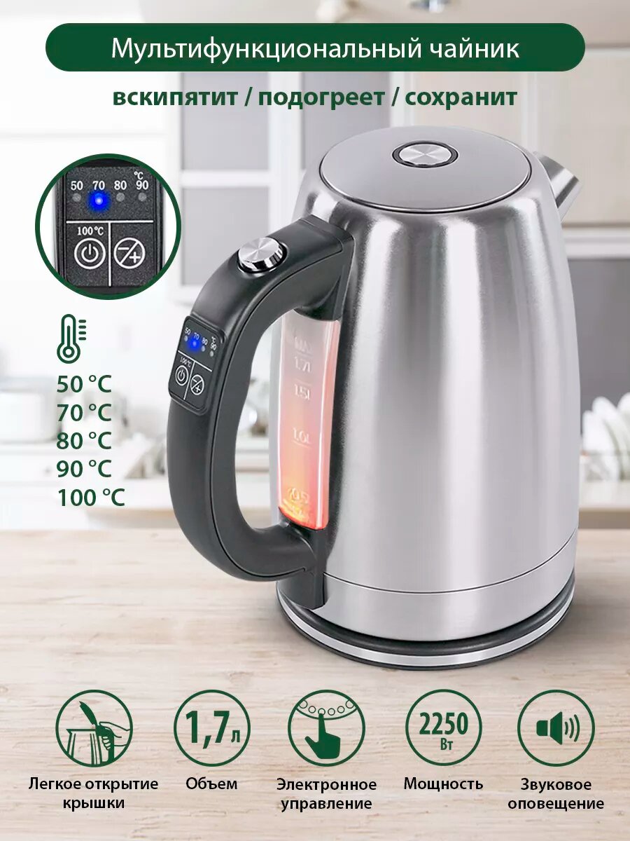 Электрический чайник MARTA MT-4564 серый жемчуг с контролем температур, умный 1.7 л интересное: