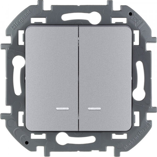 Выключатель 2-х клавишный с подсветкой Legrand Inspiria для скрытого монтажа, цвет - алюминий