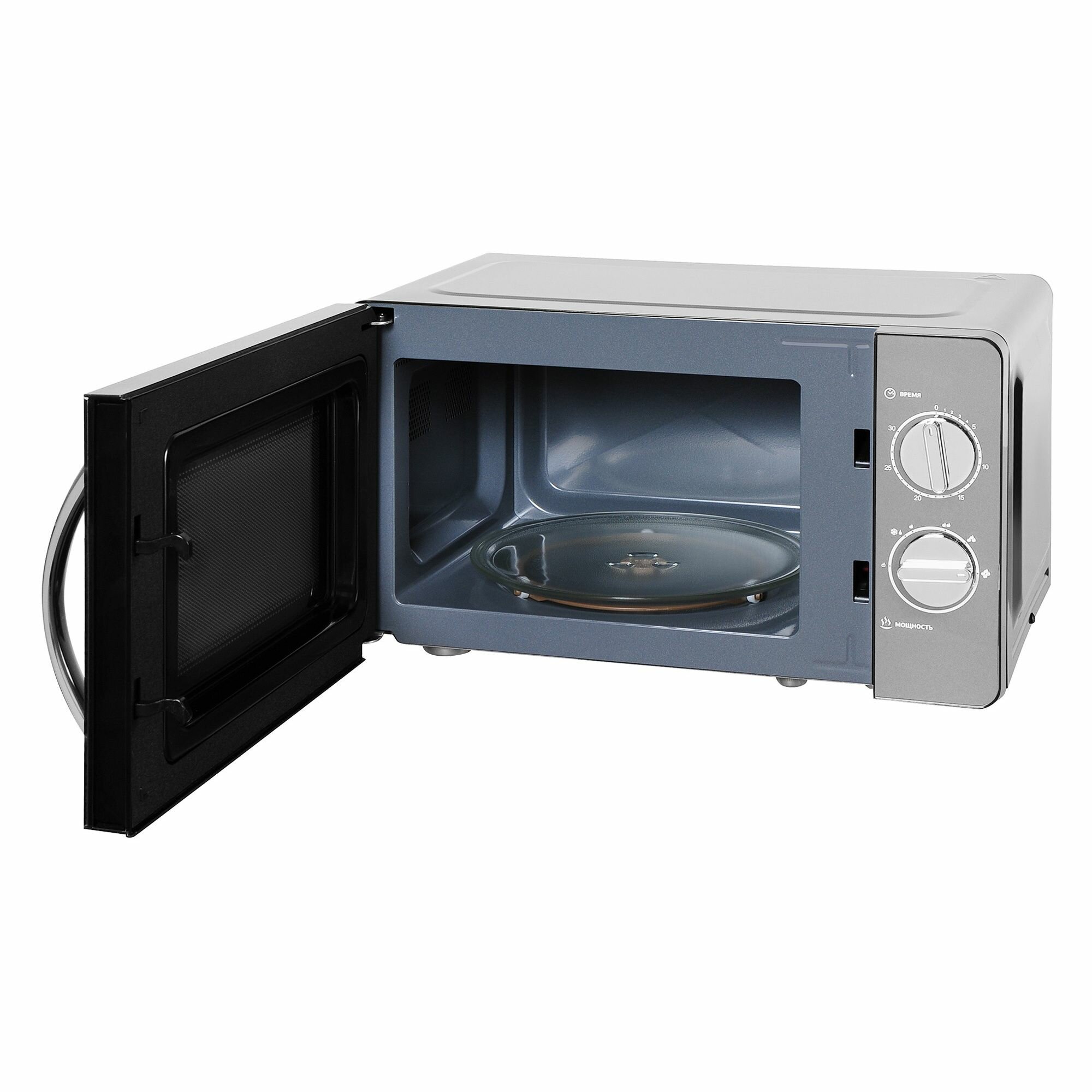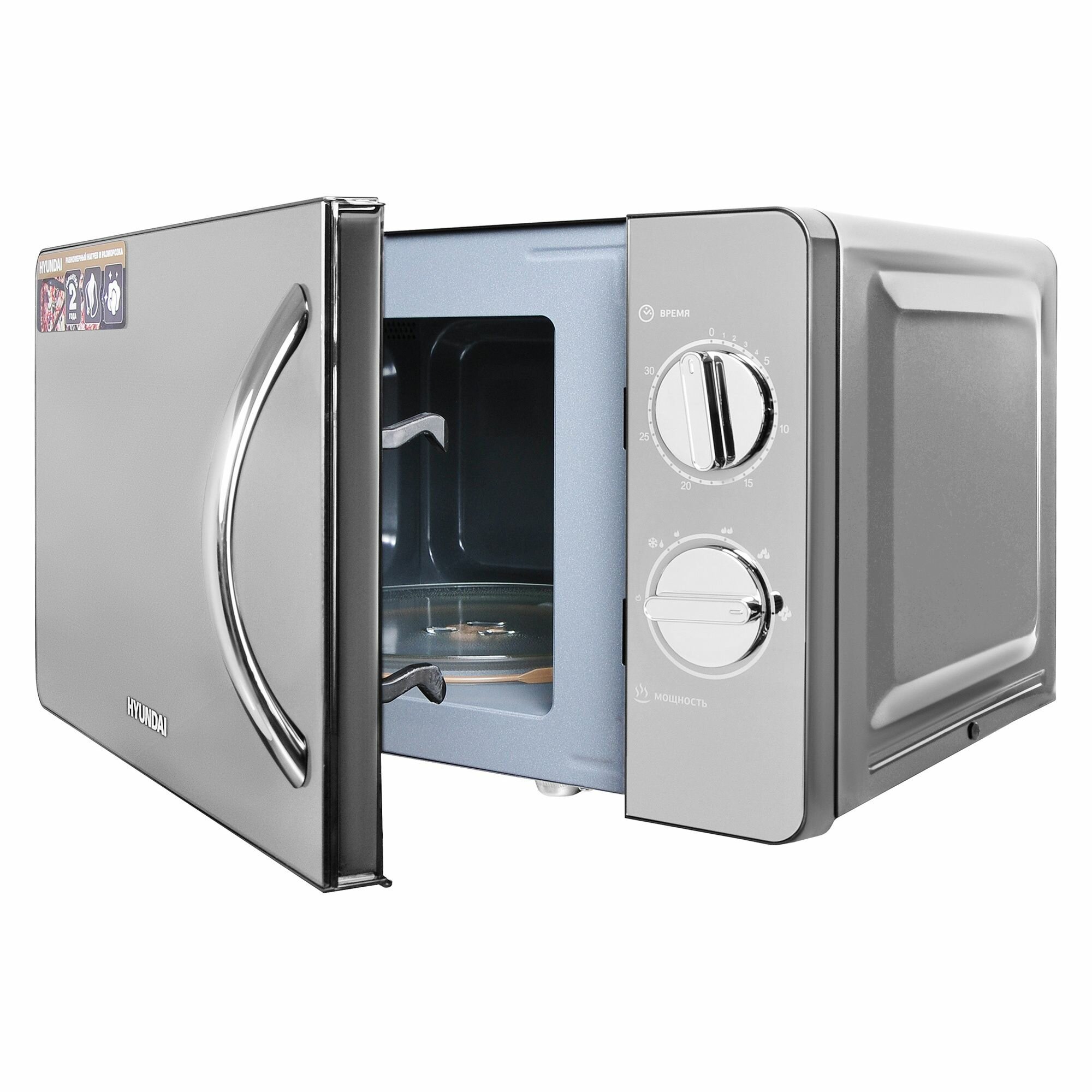 Купить Микроволновая печь Hyundai HYM-M2007 черный/хром, с механическим управлением, поворотным столом 24,5 см, объем камеры 20 л, мощность 700 Вт, открывание дверцы ручкой, функции разогрева и разморозки