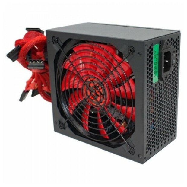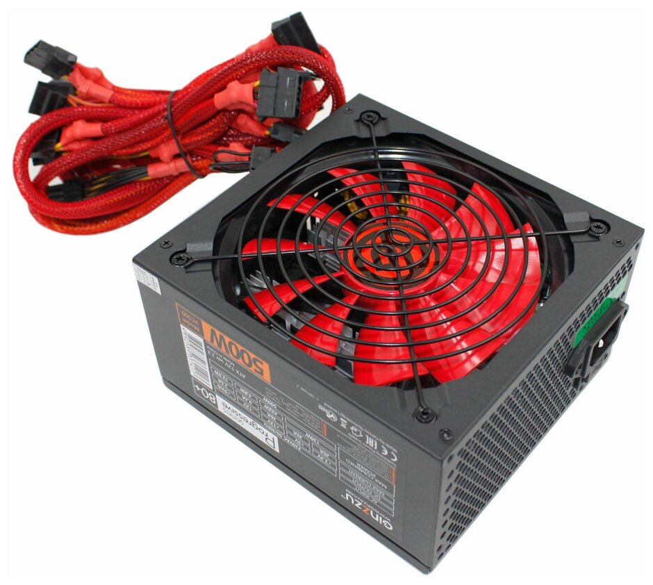 Ginzzu PC500 14CM(Red) 80+ black,APFC,24+4p,2 PCI-E(6+2), 5*SATA, 4*IDE,оплетка, кабель питания,цветная коробка