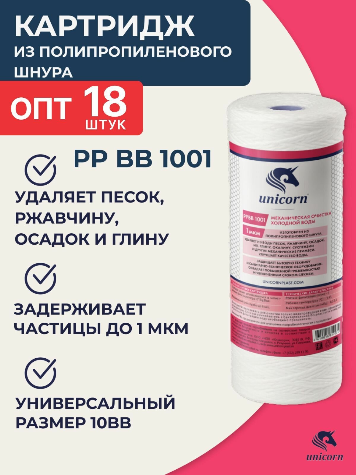 Unicorn Картридж Unicorn 10BB, РS 1001, механическая очистка, из вспененного полипропилена, 1 мкм